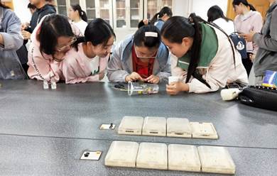 开幕式结束后,各参赛队前往相应比赛地点进行项目比拼。本次运动会共有五个趣味科技项目,分别是“放飞梦想”航模大赛、“金手指”滴胶大赛、纸牌结构设计大赛、水上旋转盘和“让鸡蛋飞”创意设计大赛。比赛过程中,各参赛队伍的成员团结协作,为取得好成绩而共同努力。各项目考验着同学们的细心与耐心,各队的比拼更是触人心弦,引得同学们呼声连连。
