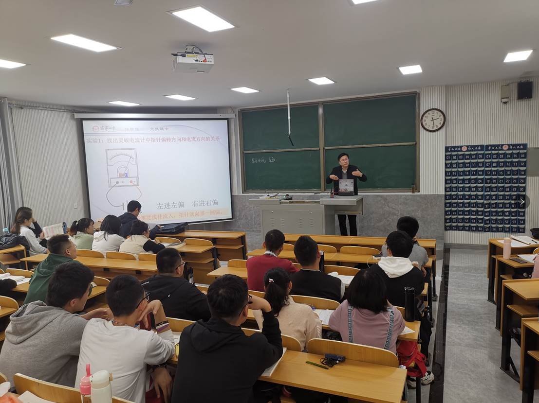 在师范生培养过程中,学院坚持以学生为中心的理念,积极探索的“三位一体”协同培养机制,定期邀请中学专家型教师给师范生上课,指导师范生进行中学物理教学训练,取得了很好的教学效果。