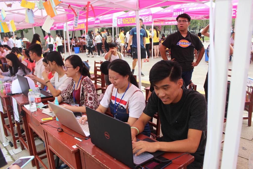 迎新现场,2016级同学满怀热情迎接前来报到的新同学和陪同的家长,引导他们完成报到流程。与以往不同,今年一改传统的报到流程,使用扫码即可完成现场报到。大家热情高涨,主动带领新生前往学生公寓,帮助新生搬运行李并介绍校园环境及沿途建筑。学院楼前,综合咨询处为新生仔细解答各种问题并带领新生参观物理教学楼,同时给他们讲解NT动漫