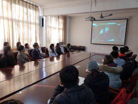 师生热烈关注,在院楼225会议室集中收听收看大会盛况。