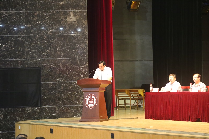 从建院以来在量子光学、物联网工程、相对论等学科上的重大突破。随后,张承琚就当今高校热议的“双一流建设”讲述了中国教育面临的转折点,表达了中国要从教育大国走向教育强国的必然性和自信心;他回忆了物理科学对人类社会做出的巨大贡献,强调物理学科在国家和社会建设、发展过程中应担负起责任感和使命感。最后,由山东师范大学高铁军教授代表本次大赛的评委进行了宣誓,秉承公开、公正、公平的原则,全心全意为本次比赛做好评判工作。