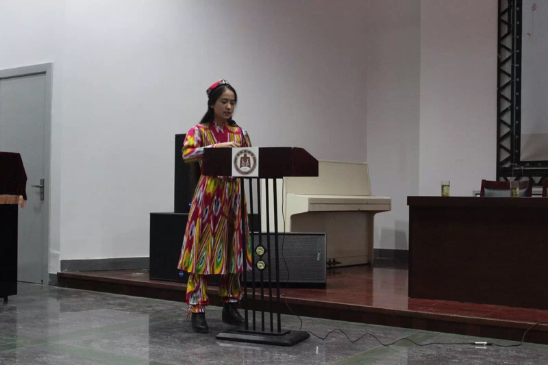 回族学生代表米荣光代表全体少数民族学生发言,表达了对民族文化的自豪和对母校的感激之情。随后,工作人员播放了由团委网络部和少数民族事务部联合制作的少数民族同学对母校的祝福视频。最后,由少数民族学生代表古丽波斯坦·艾禾麦提阿和依沙吾丽·沙德克依次讲解了维吾尔族、哈萨克族的文化特色,以及少数民族代表吾尔肯的冬不拉表演。