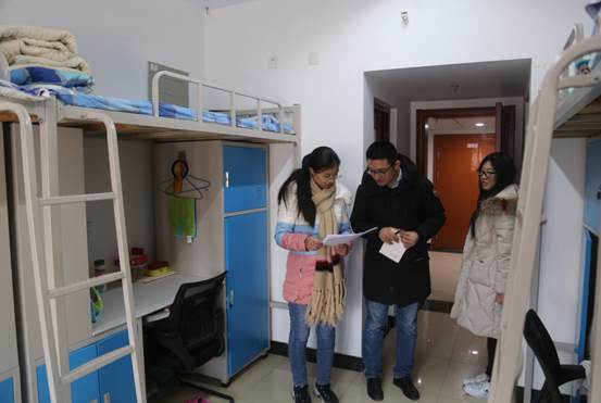 近期《关于做好2019年寒假和春节期间研究生安全教育工作的通知》,1月16日下午学院领导老师及研究生纪检部和宿管部成员深入学生宿舍和自习室,了解同学们的学习、生活状况,帮助同学们解决生活中的问题,开展了安全、卫生大检查。在研究生宿舍及学院研究生自习室里,学院领导和老师叮嘱同学们一定要加强安全防范意识,营造一个安全、健康、舒适的学习和生活环境。本次学生宿舍及自习室安全大检查,全方位查找安全问题与盲点,强化了研究生安全意识,对学院安全管理工作起到积极作用。