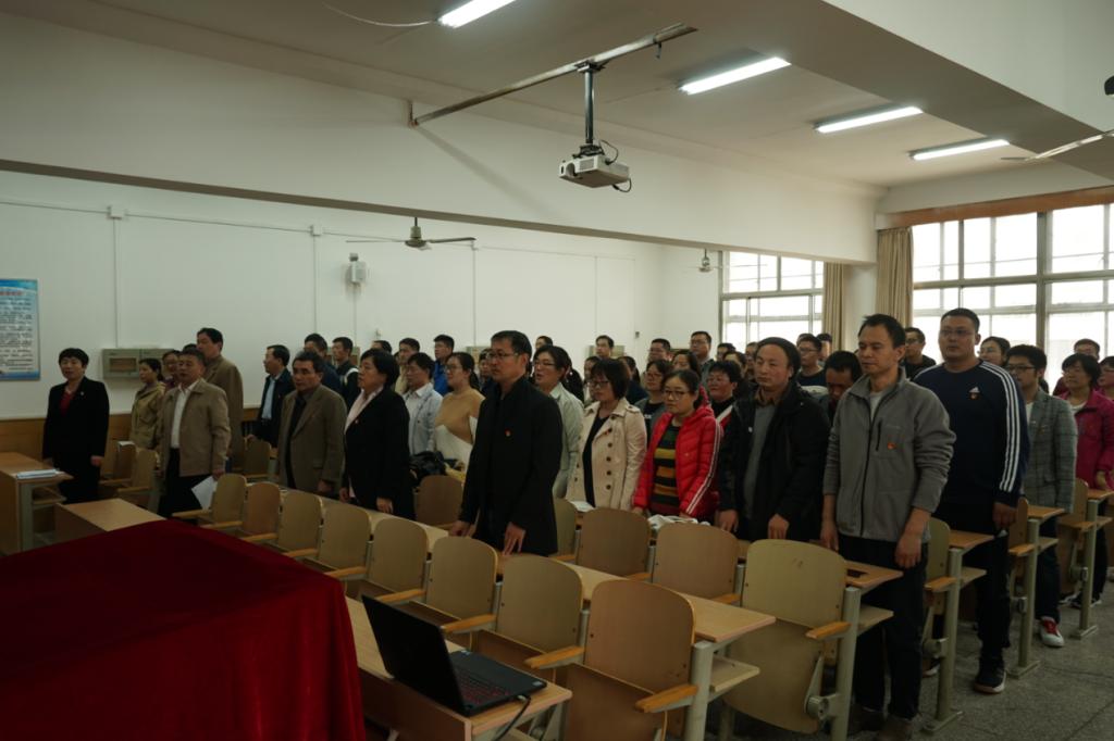 换届大会在庄严的国歌声中拉开帷幕。学院党委书记杨志英代表上届党委作题为《不忘初心,继续前进,努力实现学院发展新跨越》的工作报告。她全面回顾了三年来学院在领导班子建设、基层党组织建设、党风廉政建设、意识形态和思想政治工作、群团工作、教学科研等方面开展的工作,取得的成绩和存在的不足,明确了未来的奋斗目标和主要任务。她强调学院新一届党委,将以习近平新时代中国特色社会主义思想和党的十九大精神为指导,全面落实上级党组织和学校党委的部署要求,持续加强党的建设,充分发挥基层党组织的政治核心、战斗堡垒作用和党员先锋模范作用,与学院领导班子一起,团结带领全体师生员工,乘势而上,真抓实干,努力实现学院发展新跨越!