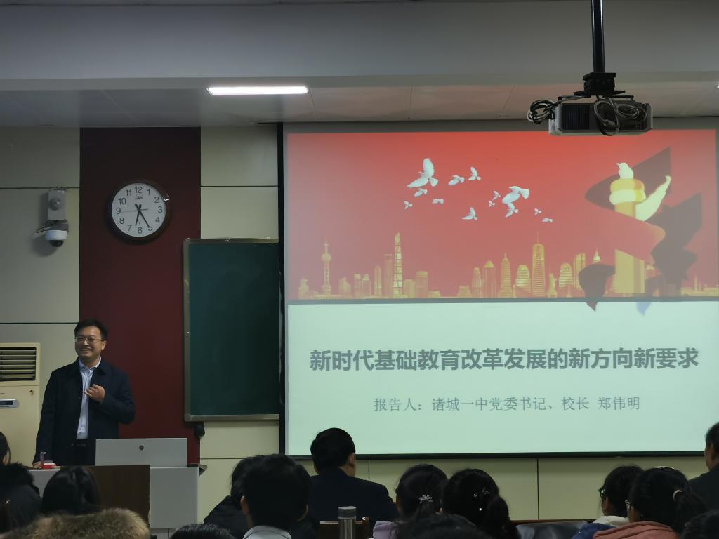 11月27日下午,诸城一中党委书记、校长郑伟明在物理楼313教室以“新时代基础教育改革发展的新方向新要求”为题做报告,NT动漫