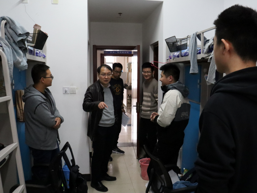 学院院长曹丙强和辅导员深入学生宿舍,落实隐患排查工作。走访过程中,曹丙强与同学们亲切交谈,关心他们的学习和生活情况,叮嘱同学们要严格遵守学校规定,树立正确的安全观念。