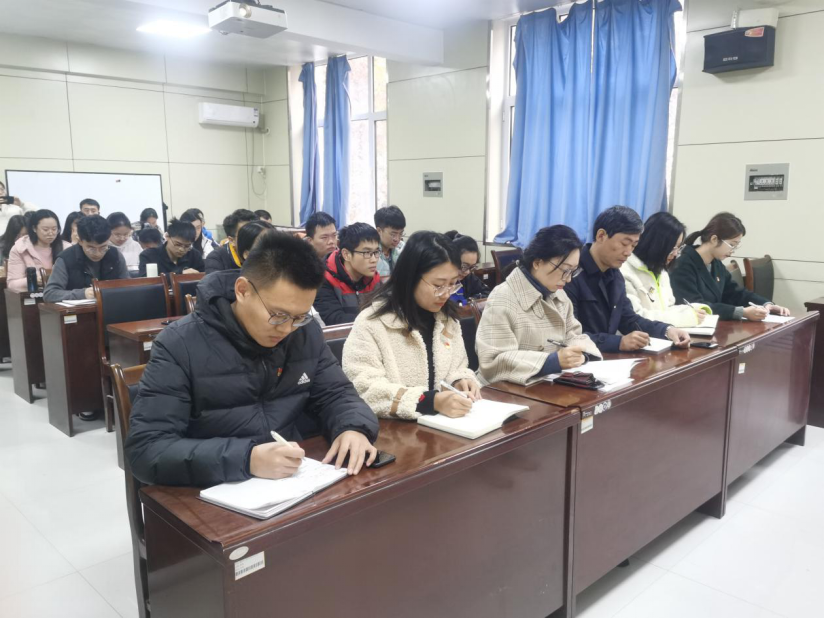 11月26日上午,本科生党支部在物理楼313会议室开展“学习全会精神,展现青春担当”主题党日活动,本科生党支部书记王琼,辅导员李爱国、颜冲、邱金芝、孔瑞、王衡出席会议,本科生党支部全体党员参加。本次活动由组织委员颜冲主持。