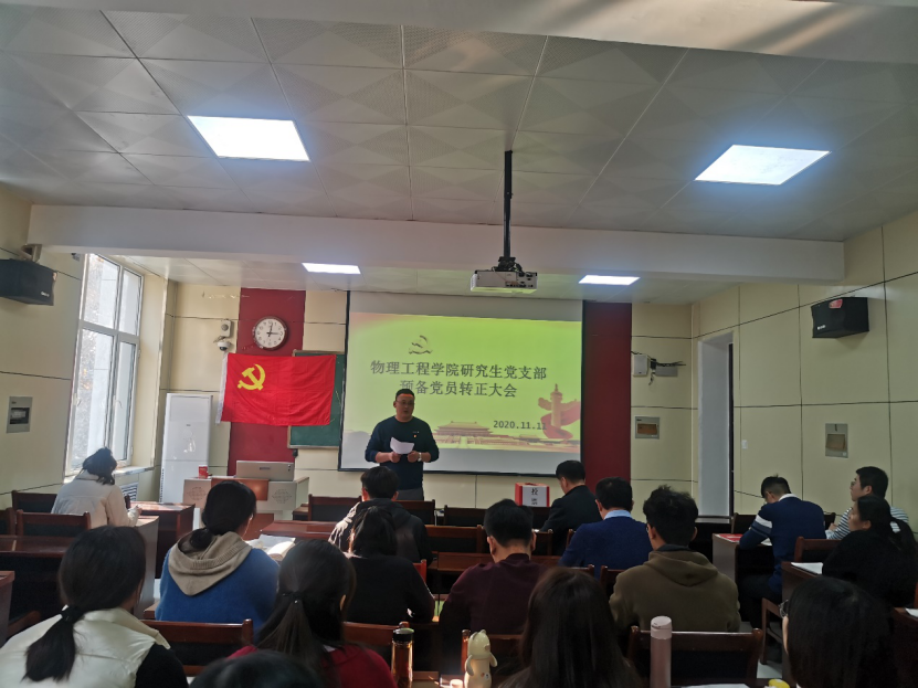 11月11日下午,研究生党支部于物理楼313会议室召开预备党员转正大会。研究生党支部全体党员参加,本次会议由支部书记孙海瑞主持,学院党委委员王玉德列席会议。