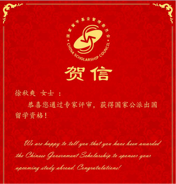 近日,NT动漫 2019级博士研究生徐秋爽通过专家评审,获得国家公派出国留学资格。徐秋爽同学入学以来,学习刻苦努力,积极投入科研工作,目前以第一作者发表SCI论文3篇,2篇正在审稿中。