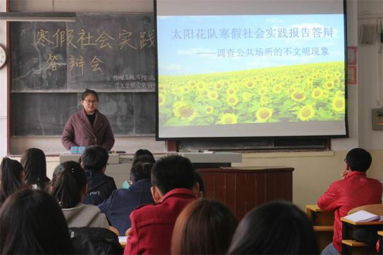 团委主办,社会实践部承办的“寒假社会实践答辩会”在院楼213教室顺利举行。社会实践部的全体成员担任评审,参加寒假社会实践活动的学生代表参与此次答辩会。