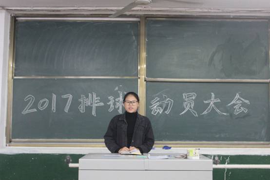 2017级排球动员大会在二阶一教室召开,学院党委副书记孙金杰和学生会主席陈相全出席会议,2014级、2015级、2016级排球队代表和2017级全体排球队员参加大会,体育部副部长马昆主持会议。