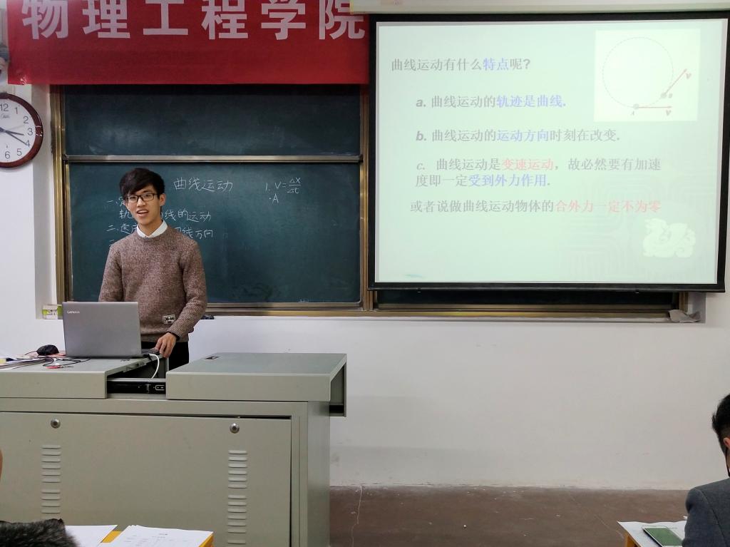 活动伊始,由张雷老师做开场讲话,他对在初赛中脱颖而出的参赛选手表示祝贺并预祝选手在复赛中有更精彩的表现。随后,各参赛选手依次上台展示自己的课堂。各具特色的授课方式,思路清晰的知识讲解,简单有趣的实验示范吸引观众目光,充分调动了课堂气氛。最后,主持人公布本次大赛获奖选手名单。