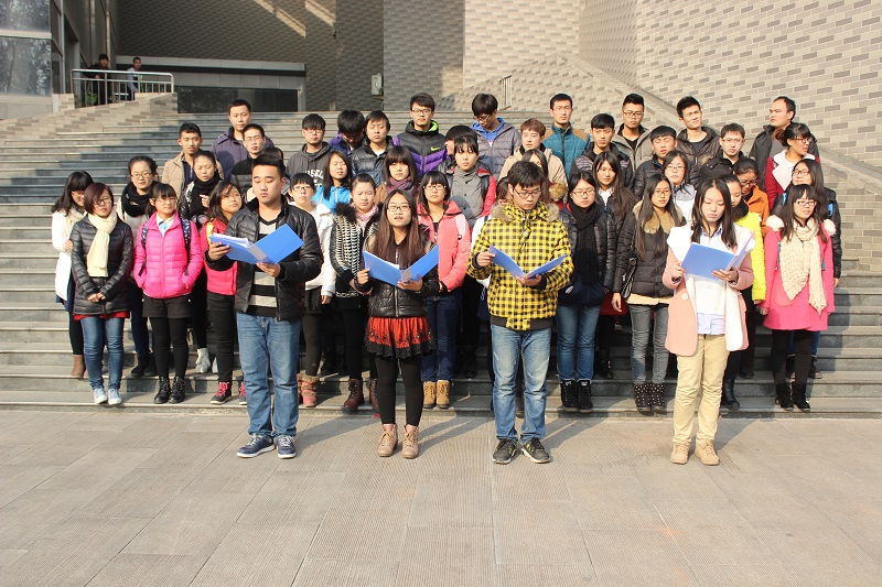 12月7日中午,NT动漫 在大学生活动中心礼堂及其南侧广场进行了“辞旧迎新,颂响中国梦”纪念“一二·九”大型朗诵比赛的第二次彩排。