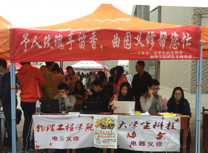 团总支主办,团总支网络部及科技协会联合承办的“予人玫瑰手留香,曲园义修帮您忙”学雷锋纪念日义务维修活动在大学生活动中心广场举行。