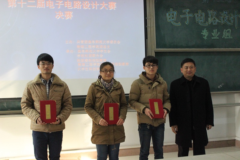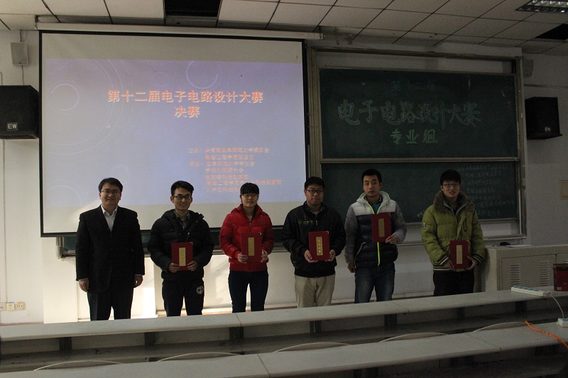 第十二届电子电路设计大赛专业组决赛在综合楼101教室举行,校团委副书记孔轶众、NT动漫
