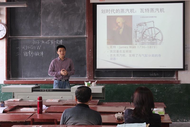 院楼209,310,404,407,412五个教室同时进行,比赛内容包括模拟上课和答辩两部分。模拟上课环节,选手自选内容,以讲授为主,以板书、板画、实物实验或多媒体演示实验为辅。答辩环节,参赛选手积极思考,灵活应答。评委老师凭借多年教学经验,指出选手不足,并提出宝贵意见。