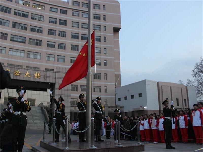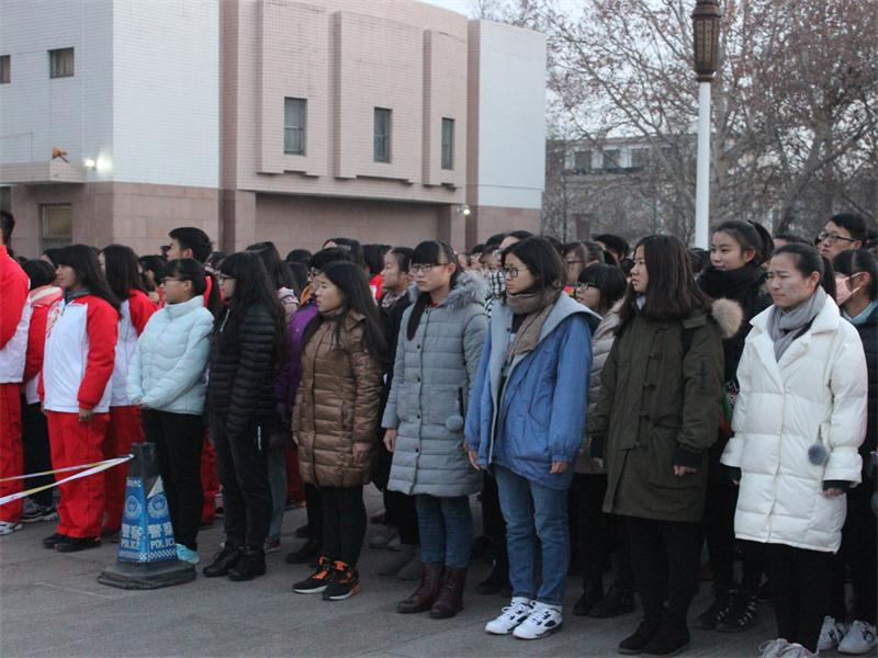 首先,国旗护卫队代表发言,指出“一二·九”运动是在中国共产党领导下的由进步青年大学生发起的抗日救国运动,同时表示我们当代大学生应当秉持爱国主义精神,孜孜不倦的学习。升旗仪式开始,全体学生庄严肃穆,向国旗注目行礼,奏唱国歌。在雄壮的国歌声中,鲜艳的五星红旗伴随着朝阳冉冉升起。