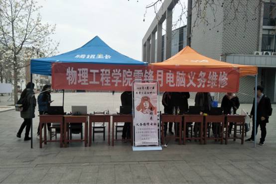 团委主办、团委网络部承办的电脑义务维修活动在大学生活动中心前举行。