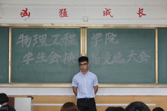 36届学生会取得的成绩表示肯定,向每位学生干部的辛勤付出表示感谢。在之后的正式竞选中,竞选人发表演讲,就参选原因和当选后规划进行详细阐述,同时对老师们提出的问题认真作答。