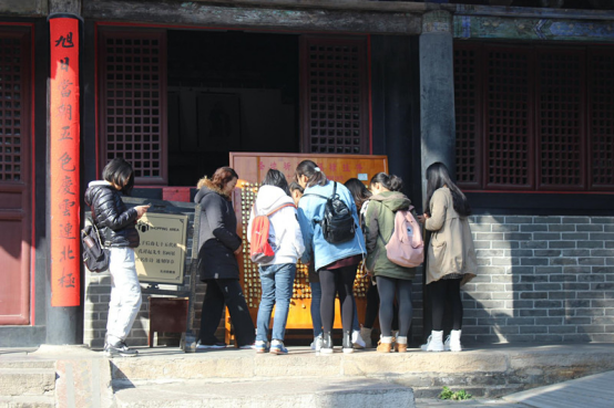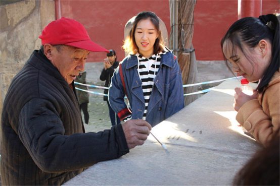 新生在实验中心门口前集合。全体同学步行至三孔景区,先后游览了孔庙,孔府,孔林。宏伟的庙宇、古色古香的建筑、石砌的小路,无不让同学们驻足欣赏,拍照留念。千年古木、残壁碑文、书法文字,无不让同学们惊叹其中的庄严神圣与博大精深。同学们在古朴的园林之中,接受了儒家文化的洗礼,领略了至圣先师的风采。