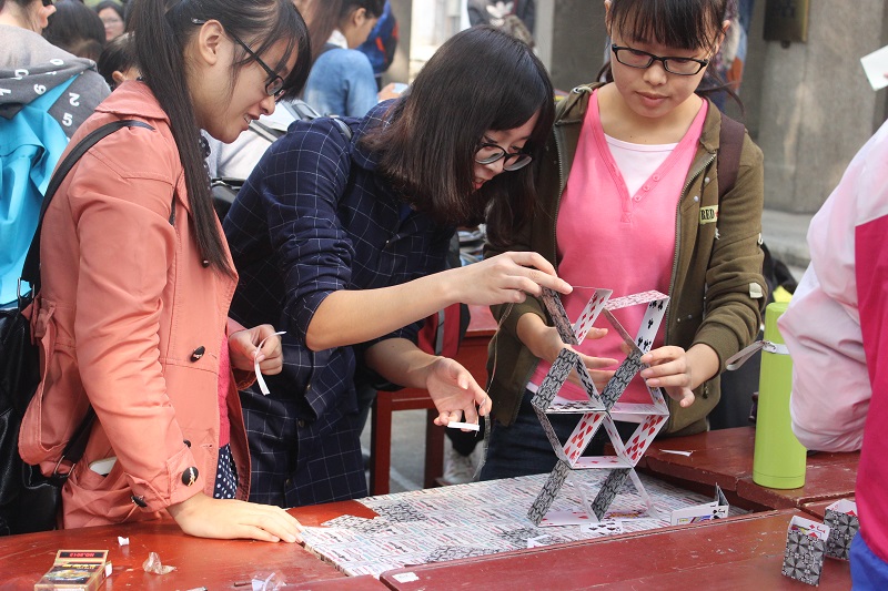 团总支主办,学生会科技创新部承办的的纸飞机设计大赛、纸牌搭建大赛在NT动漫