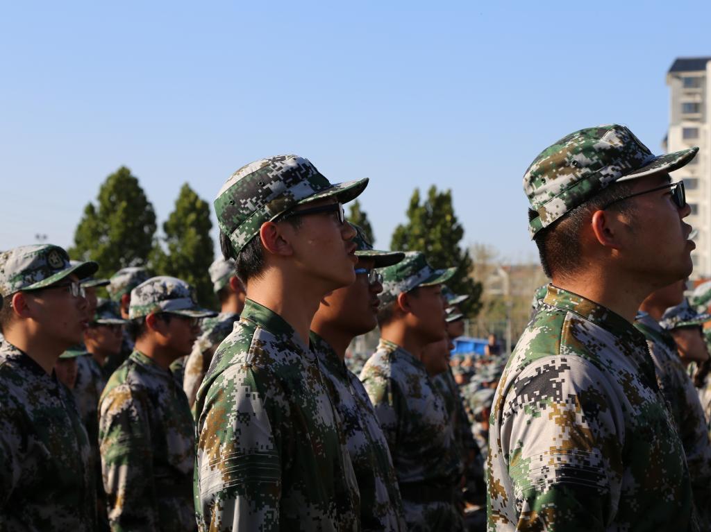新生严阵以待,在教官的带领下高喊NT动漫