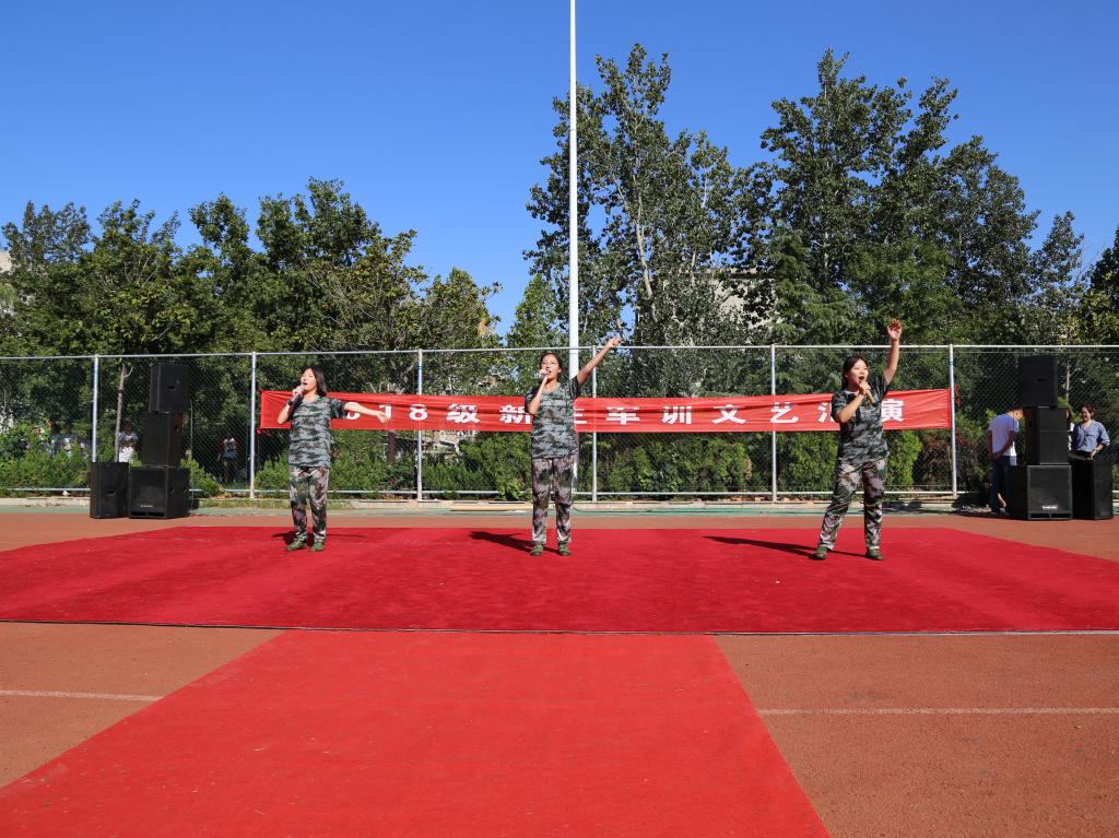 学生工作处、团委主办的主题为“一腔热血铸军魂,千里婵娟共团圆”的2018级新生军训文艺会演于西操场举行,2018级新生到场参加。