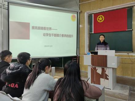 本期课程的主题是“擦亮眼睛看世界——论学生干部媒介素养的提升”。曲媛媛老师就基本媒介的发展历程向同学们展示了生活中各种各样的宣传媒介,通过生动鲜活的网络实例,指出了媒介在传播信息的过程中运用不恰当产生歧义的窘况,引起了同学们的强烈共鸣。