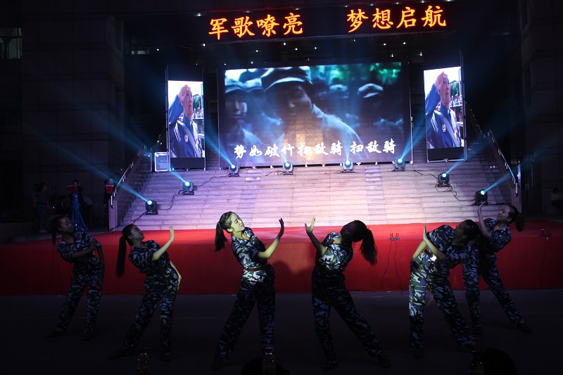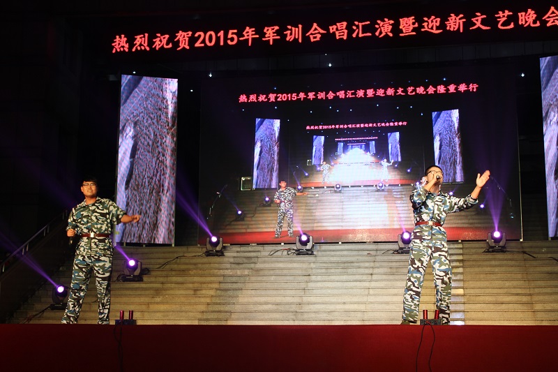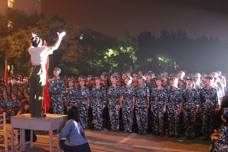 学生工作处、团委主办的“军歌嘹亮,梦想启航”2015年军训合唱汇演暨迎新文艺晚会于孔子文化广场圆满落幕。NT动漫
