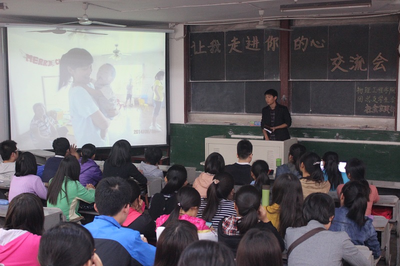 团总支学生会社会实践部主办的“让我走进你的心”心理辅导交流会在院楼二阶一教室顺利举行,2014级九个班级的学生代表参加了此次交流会。