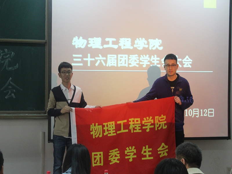 第36届团委学生会大会顺利举行,学院党委副书记孙金杰、团委书记王琼、辅导员厉成远出席会议,同时与会的有35届学生会主席张志恒与36届团委学生会全体成员。36届学生会办公室主任朱珈彤主持会议。