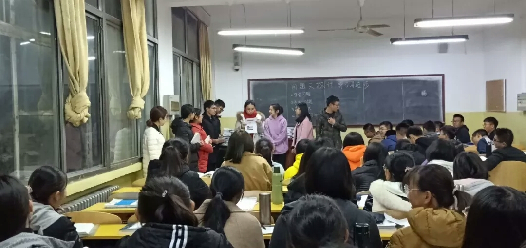 女生部部长陶媛带领其部成员到2018级各班自习室进行宣传。