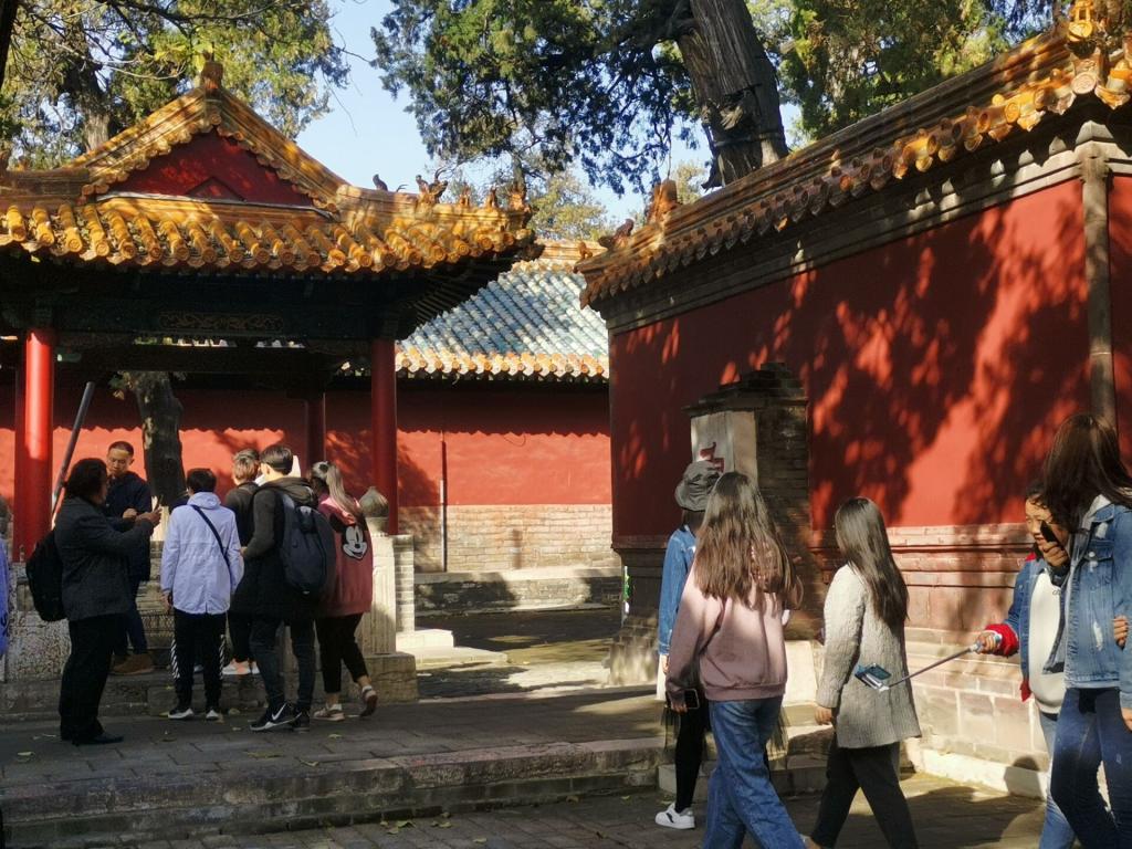活动开始前,李靖靖对本次活动进行简单介绍并细心向同学们强调安全问题及游览注意事项。步行前进到景区后,同学们依次游览孔庙、孔府、孔林。景区内雄伟的宫殿、古老的房屋、石砌的小路,无一不让同学们惊叹中华传统文化的博大精深。古色建筑令同学们驻足欣赏,残碑朱门令同学们置身汗青,体会历史的厚重。尤其是看到匾额上的文字:“万世师表”、“生民未有”时,同学们感受到一代先贤的睿智。游圣地,学知识,同学们面对先师孔子的伟大事迹和思想,崇敬之情不禁油然而生。