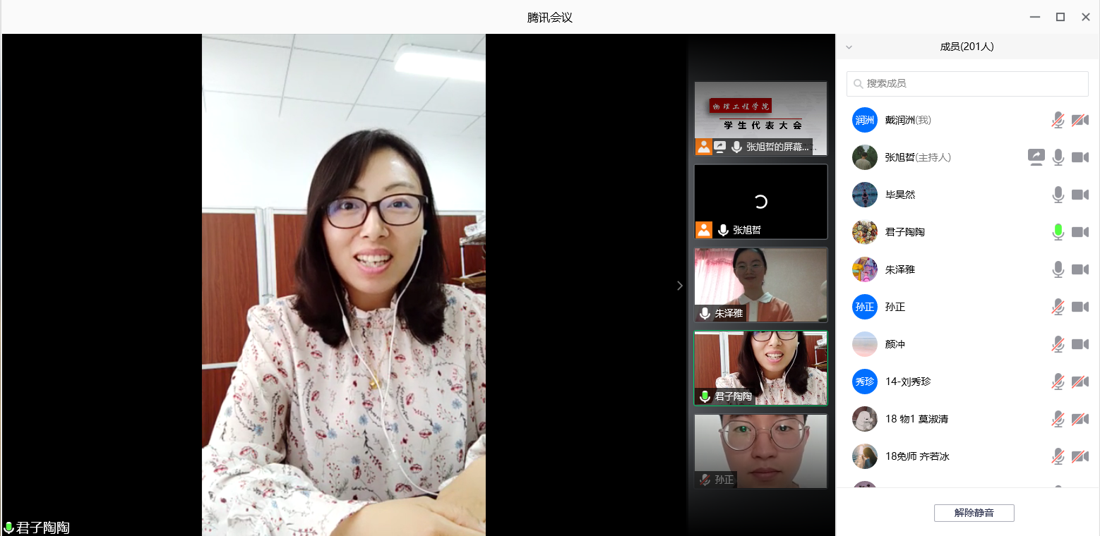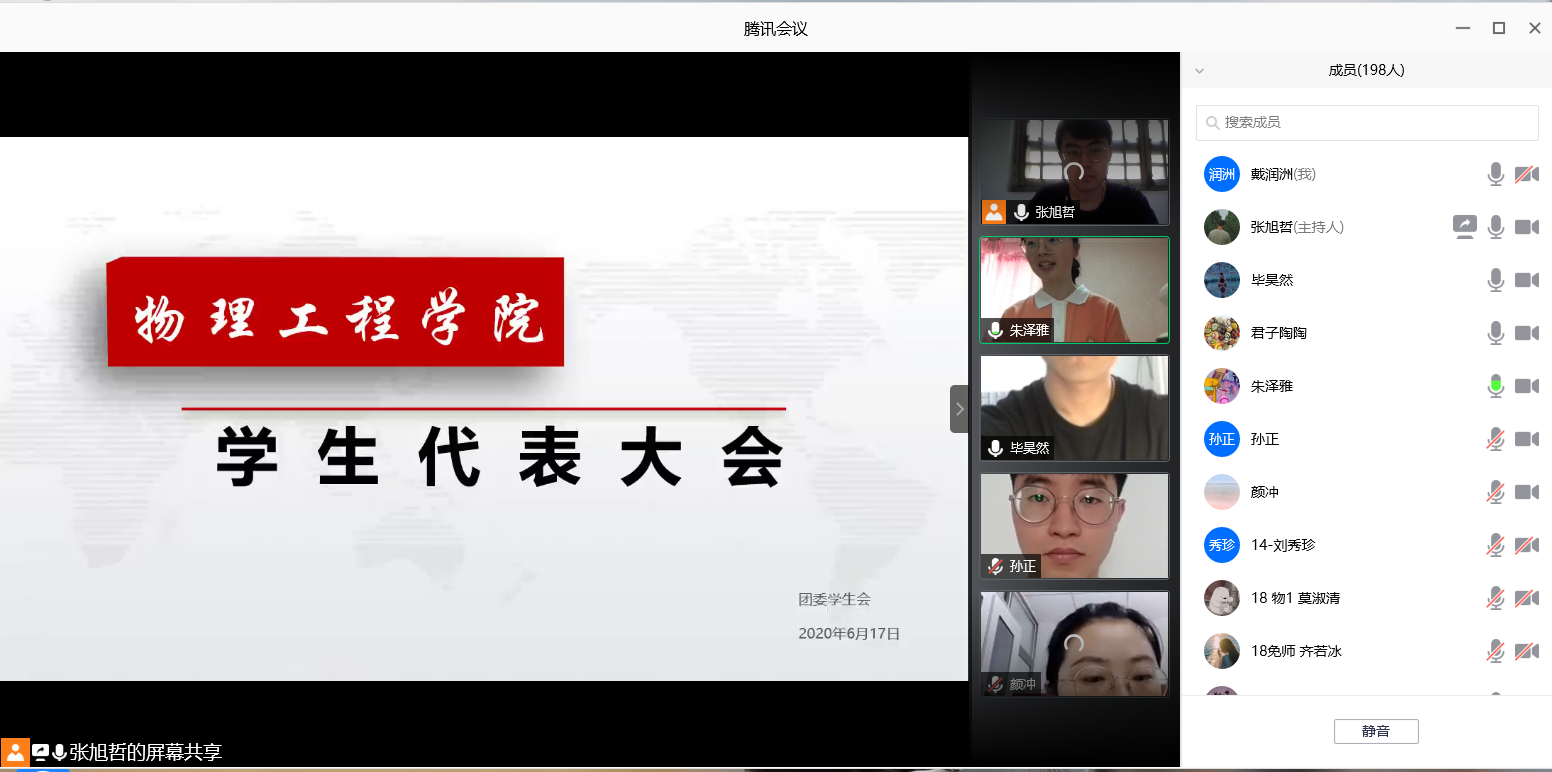 利用腾讯会议线上召开2020年学生代表大会。团委书记王琼、辅导员颜冲、李靖靖出席本次会议,学生代表参加会议,其中非校、院级学生会组织骨干的学生代表约占66%,符合会议要求。会议由第39届团委学生会副主席朱泽雅主持。
