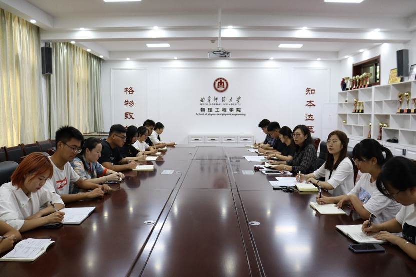 于物理楼225会议室召开新学期学生工作会议。学院团委书记王琼、辅导员颜冲、李靖靖出席会议,四十届团委学生会主席团及部长参加会议。会议由颜冲主持。