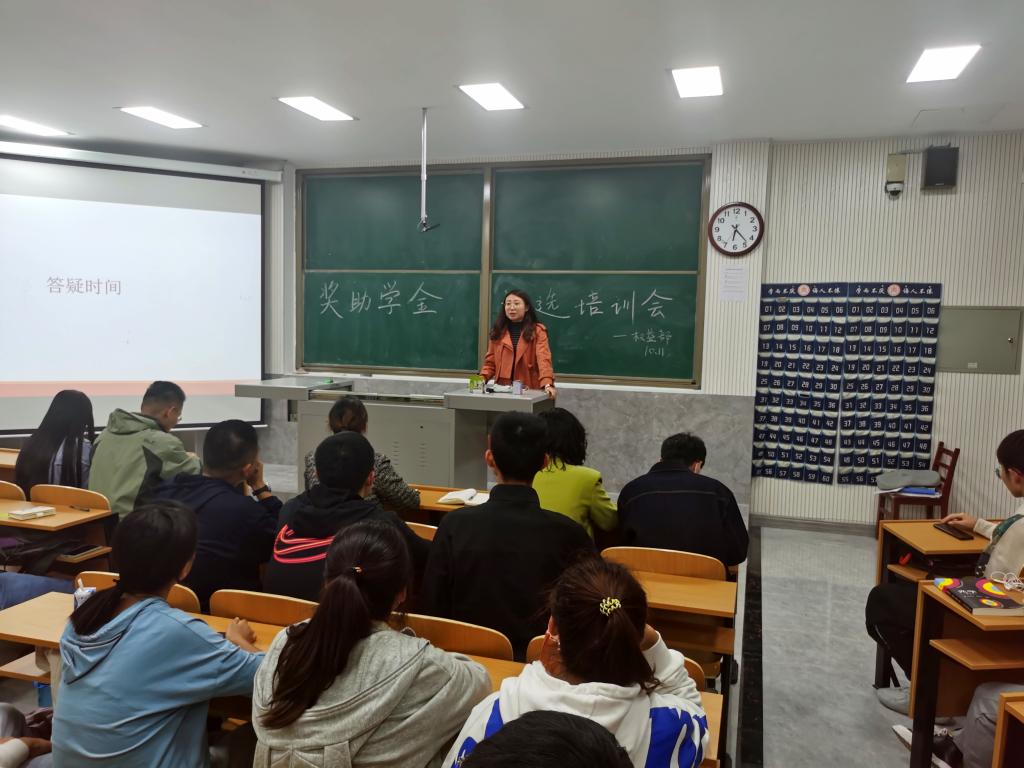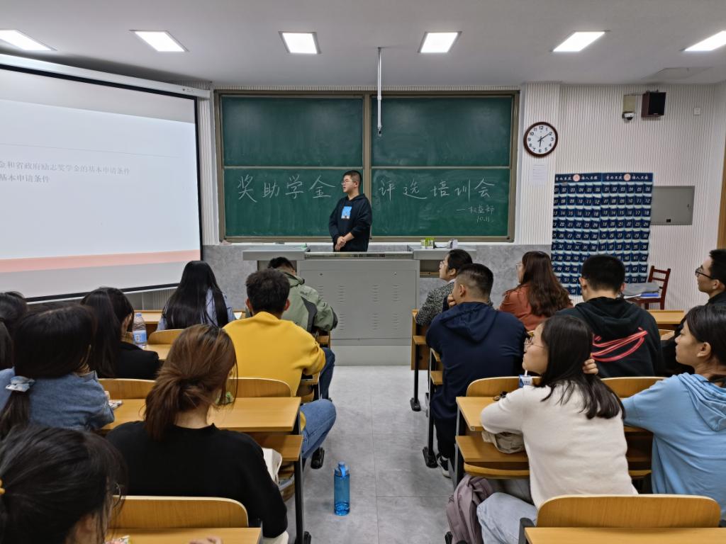 10月11日下午,学院于物理楼二阶一教室召开奖助学金评选培训会,辅导员颜冲、邱金芝、孔瑞、王衡、朱佳文、张杰出席会议,各班级奖助学金评选小组成员参加会议。