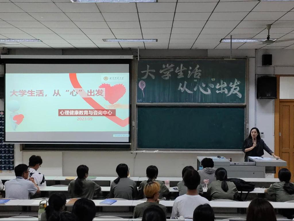于9月21日晚在综合楼506、706教室举办新生心理健康教育专题讲座。本次讲座由学院心理辅导员朱佳文主讲,2023级全体新生参加。