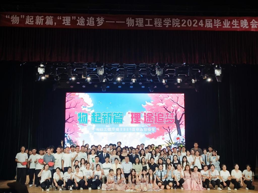讯(通讯员:李依诺 王雪晴)为丰富学生校园文化生活,表达对毕业生的美好祝愿,5月26日晚,学院于大学生活动中心礼堂举办 “物起新篇,理途追梦”2024届毕业生晚会。学院院长满忠晓、党委副书记王琼、副院长刘广强、全体辅导员出席晚会。