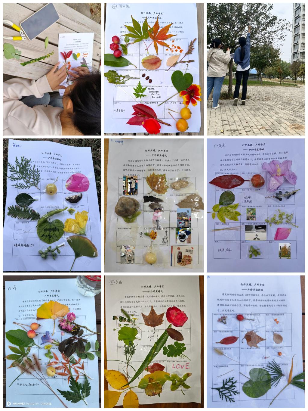 活动分为“寻宝”、“鉴宝”和评选优秀作品三个环节。学生依据寻宝地图和任务清单,在指定区域探索符合特征要求的自然元素,并采用文字、照片或实物等形式记录在任务清单中;“鉴宝”环节中,学生表示首次关注到校园中微小角落,未来将以乐观热情的姿态去拥抱生活;任务清单形色各异,充分展示学生的创新能力和对自然的感知能力,评审人员依据其创意性、意义性等多方面进行评选。