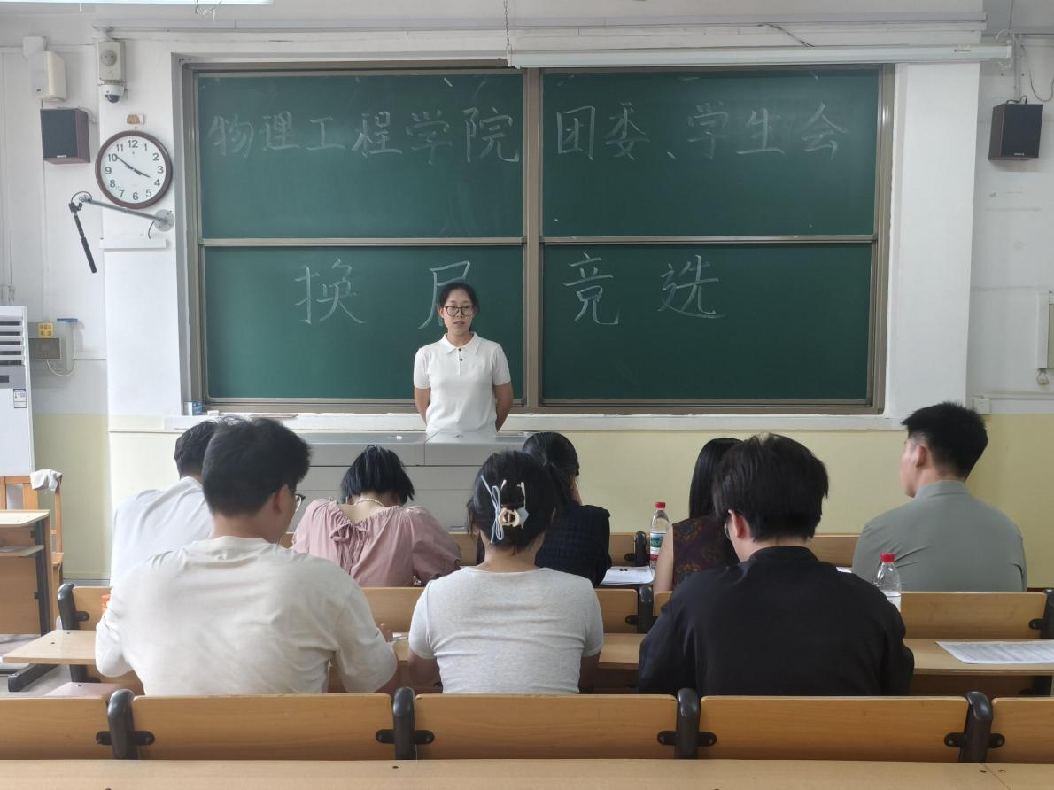 讯(通讯员:黄钰钦 李文静 摄影:李志浩 黄钰钦)为革新学生组织架构,推动学生队伍有序接力,6月11日下午,学院于物理楼210教室举行第四十五届团委、学生会换届竞选。学院党委副书记王琼,团委副书记朱佳文,辅导员孔瑞、邱金芝、张杰、王铭晨出席竞选,第四十四届学生会主席团成员参与评审。