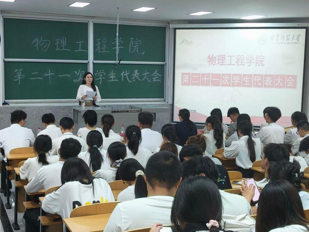 讯(通讯员:刘娜 李依诺 摄影:李世航 周鑫)6月13日下午,学院于物理楼二阶二召开第二十一次学生代表大会。学院党委副书记王琼,团委副书记朱佳文,辅导员孔瑞、邱金芝、王铭晨,校学生会主席高修权出席会议,各年级学生代表参加会议。会议由学生会副主席由畅主持。