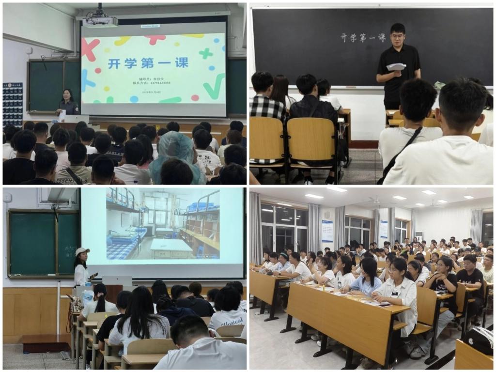 讯(通讯员:庞秀清 刘嘉晔)为深入贯彻落实立德树人根本任务,引导新生以崭新姿态开启校园生活,9月6日晚,学院分别于物理楼二阶一、二阶二、402教室、409教室组织召开2025级新生“开学第一课”主题班会。班会由辅导员朱佳文、李建涛主持,2025级全体新生参加班会。