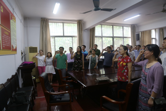 教工党支部开展“支部书记讲党课”和党员重温入党誓词活动。