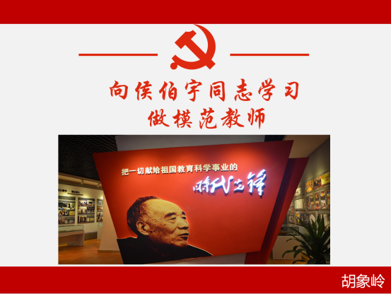 活动第一阶段,教工党支部书记胡象岭同志以《向侯伯宇同志学习,做模范教师》为主题,给全体教工党员上了一堂生动的党课。党课以NT动漫