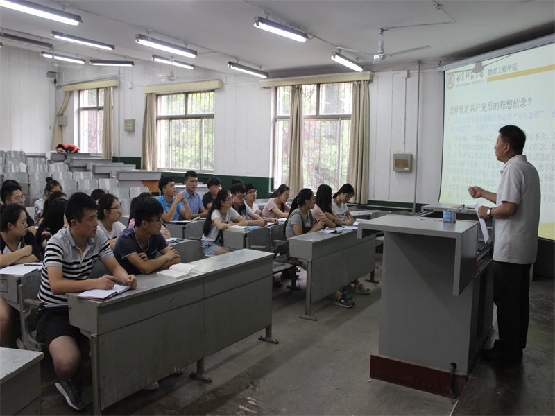 7月6日下午,学生党支部的主题为“坚定信念,对党忠诚”的党课在院楼二阶一教室举行,党委副书记孙金杰为全体本科生党员讲解共产党员的理想信念。