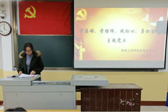 本科生党支部主办的“学英雄、学榜样、践初心、勇担当”主题党日活动在院楼209教室举行,活动由党支部书记王琼主持。