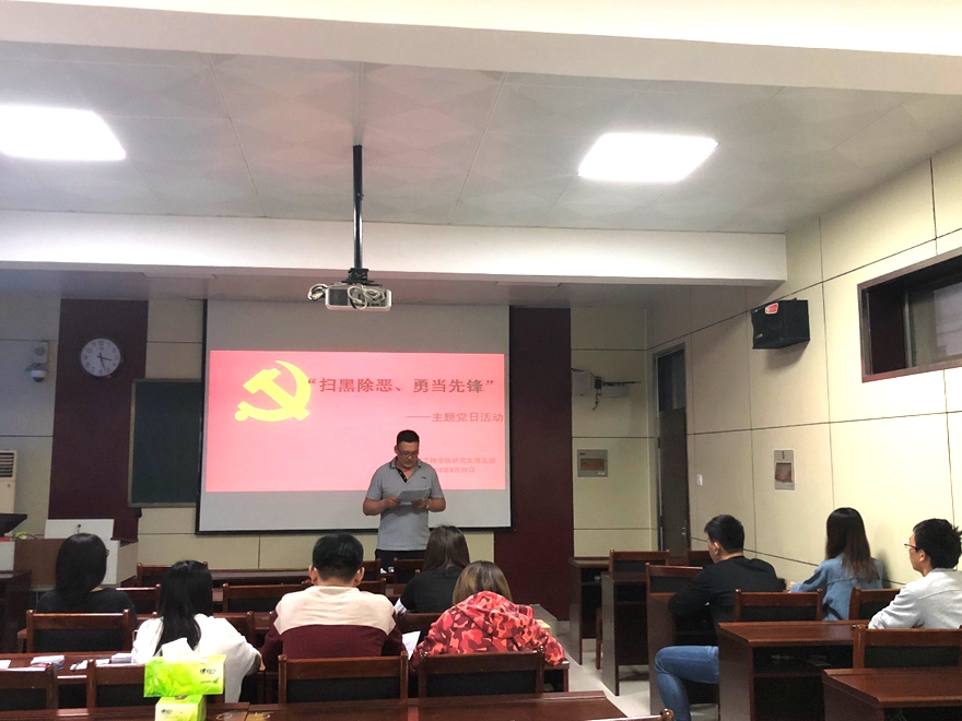 开展扫黑除恶专项斗争,是以习近平同志为核心的党中央作出的重大决策,事关进行伟大斗争、建设伟大工程、推进伟大事业、实现伟大梦想,根据学院党委的统一安排,学院研究生党支部以实际行动向以习近平同志为核心的党中央看齐,于2018年9月25日在学院313室开展“扫黑除恶、勇当先锋”主题党日活动。