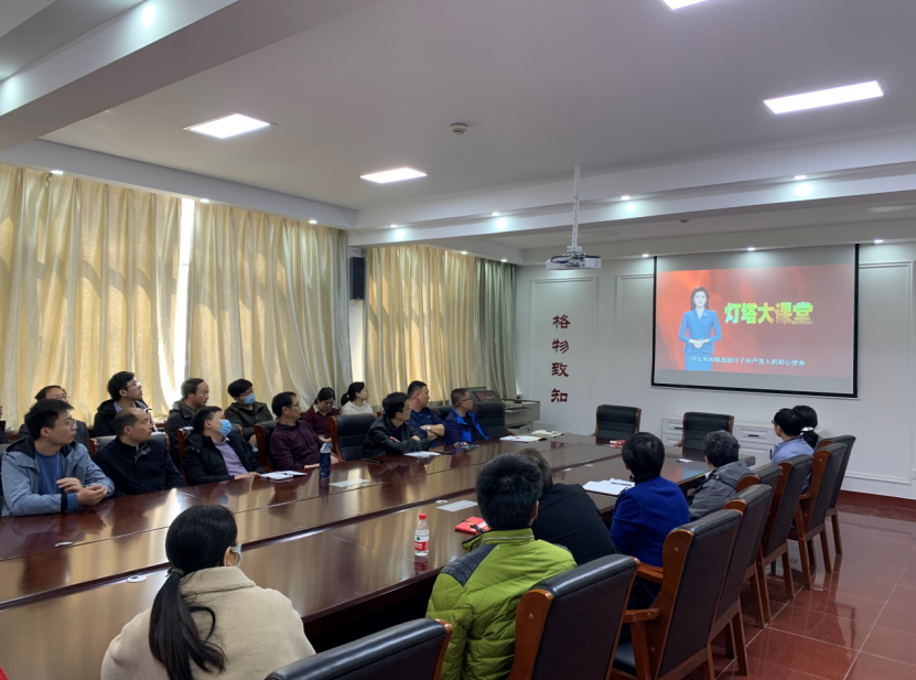 会议伊始,全体党员集体观看了“灯塔大课堂”第十八课。本期大课堂选取中共一大代表、中共山东党组织早期的组织者和领导者之一的王尽美事迹片为主课程。纪录片采用现实与历史双线条叙事方式,通过觉醒、探索、追梦三个主题,讲述了革命先驱、中共一大代表王尽美及老一辈共产党人为了民族解放和人民幸福而奋斗献身的感人事迹。