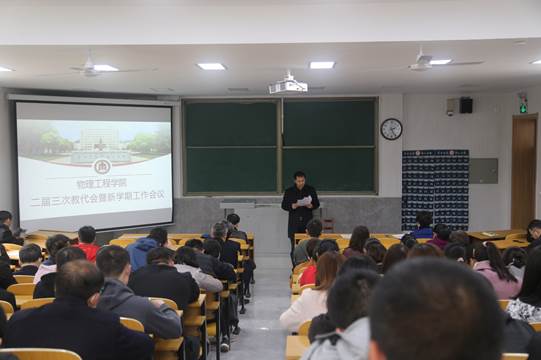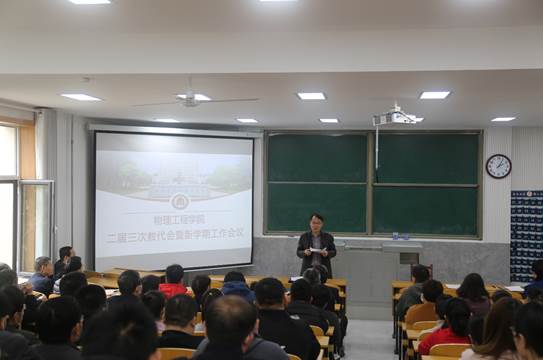 第二届教职工代表大会第三次会议在物理楼2阶1举行。全体教职工参加了会议,会议由学院党委书记杨志英主持。
