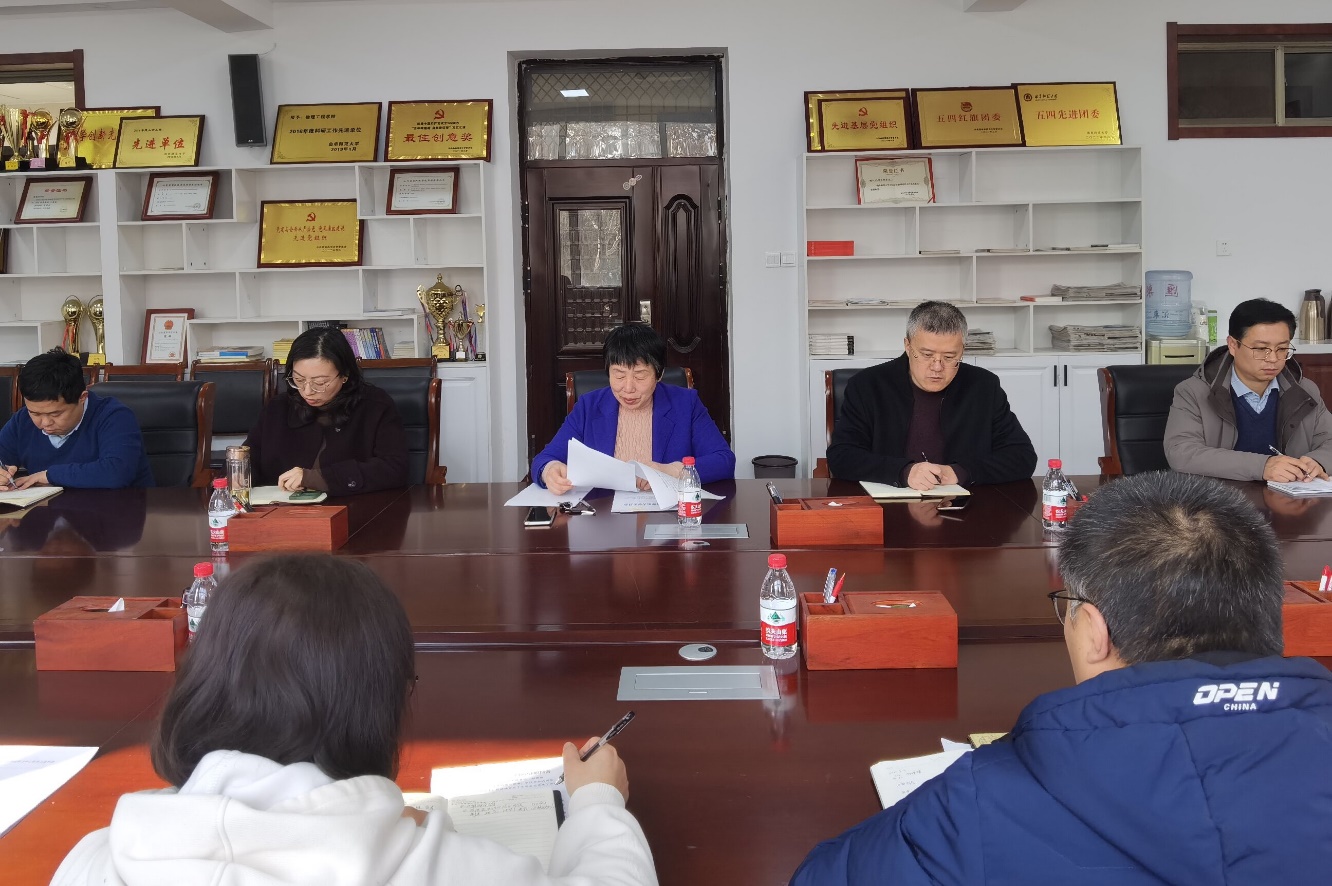 讯(通讯员:孔瑞 摄影:孔瑞)2月15日下午,学院党委理论学习中心组在物理楼225会议室开展集体学习,党委书记杨志英主持学习,学院党委理论学习中心组成员和全体辅导员参加会议。